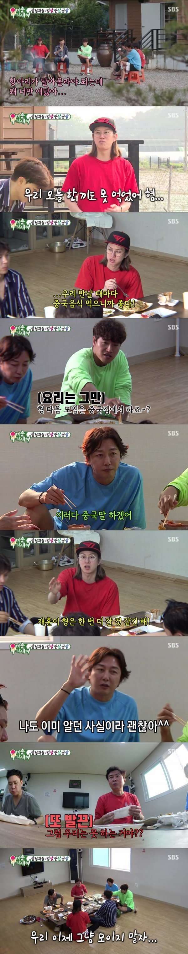 아침부터 한끼도 제대로 못먹은 희철은 참다 못해 중국 요리를 배달시켰다. 요리를 먹으면서 배를 채운 희철이 “우리 만날 때마다 중국요리 먹으니까 좋다!”라고 하자 종국은 “다음 모임은 아예 중국집에서 하자”고 했다. 이에 재훈은 “이러다 중국말 하겠다”고 말해 폭소를 안겨줬다.