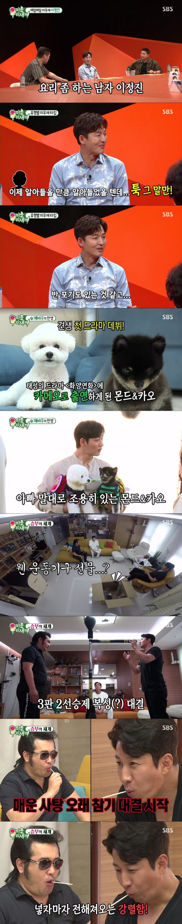 이상민의 절친 김보성과 이훈이 평소 운동량이 부족한 이상민을 위해 복싱 운동기구를 사가지고 방문했다. 복싱바 운동기구 시범을 보여주다가 승부욕이 발동한 두 사람은 3판 2선승제 복싱 대결을 펼쳤다. 김보성은 생각치 못했던 패배로 굴욕을 맛보자 ‘매운 사탕 오래 참기’로 재대결을 제안했다. 입에 넣자마자 오는 강렬한 맛에 두 사람은 침을 흘리면서 괴로워했다. 이에 이상민은 “두 사람이 왜 우리집에 와서 이 짓을 하는지 모르겠다”라고 말해 웃음을 안겨줬다.