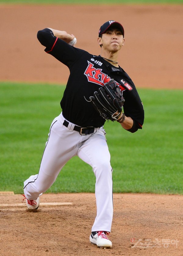 1회말 kt 김민수가 마운드에 올라 역투하고 있다.