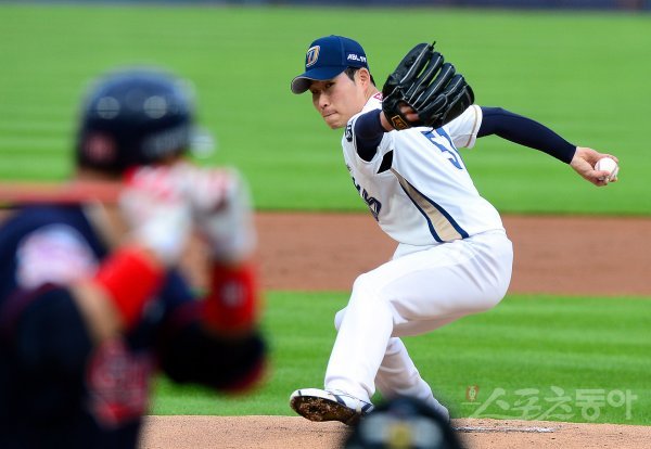 NC 선발투수 이재학이 힘차게 볼을 던지고 있다.