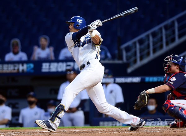 4회말 무사 1루에서 NC 알테어가 투런 홈런을 쏘아 올리고 있다.