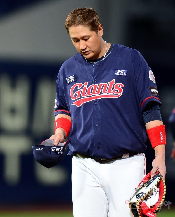 8회초 2사 만루에서 롯데 이대호가 내야 땅볼로 아웃된 뒤 아쉬워하고 있다.