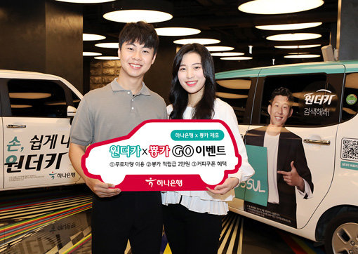 하나은행이 내년 4월 말까지 무료 카셰어링 뿅카와 손잡고 ‘하나은행 원더카X뿅카GO’ 이벤트(사진)를 시행한다.