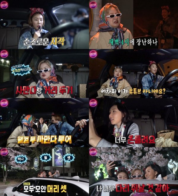 수수한 차림새로 등장한 화사까지 차에 탑승한 뒤, 여은파 멤버들은 사회적 거리 두기를 철저하게 실천하기 위해 신개념 ‘드라이브 스루’ 벚꽃 투어에 돌입했다. 달리는 차 안에서 전투적으로 사진을 찍는가 하면, 선루프 위로 얼굴만 내놓은 채 벚꽃을 만끽하며 유쾌하게 사만다 투어의 첫 페이지를 열었다.