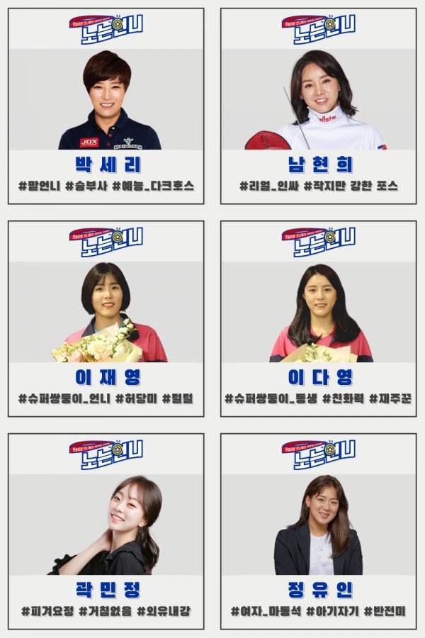 박세리, 남현희, 이재영, 이다영, 곽민정, 정유인이 제대로 ’노는 언니’가 되어 6인 6색 예능감을 폭발시킨다.