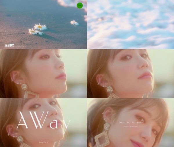 바닷가에 밀려오는 파도로 시작하는 20초 가량의 뮤직비디오 티저에는 'Away Away'라는 노랫말이 울려 퍼지며 여름 감성 가득한 '힐링 청량' 사운드가 흘러나왔다. 따뜻한 색감의 영상은 맥시한 귀걸이 포인트로 한층 성숙해진 정은지의 초상으로 가득 채우며 매력을 더했다. 정은지의 미묘한 표정 연기까지 어우러진 영상은 청량함과 몽환미로 강렬한 임팩트를 전하며 신곡 'AWay'에 대한 기대를 한껏 끌어올렸다.