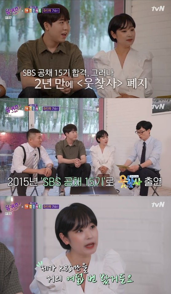 그는 “내가 불운의 아이콘 같다. ‘개콘’ 마저 폐지될 줄 몰랐다”고 속상함을 토로했다. 이어 “MBN, SBS는 한 번에 붙었다. 근데 KBS는 여덟 번 만에 합격했다. 8년을 준비했다”고 말해 안타까움을 자아냈다.