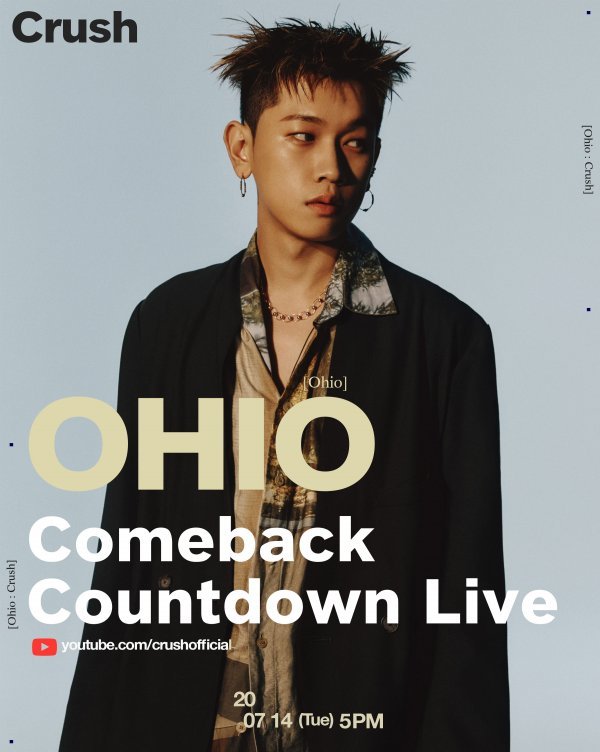 더불어 크러쉬는 오는 14일 신곡 음원 공개에 앞서 이날 오후 5시부터 공식 유튜브 채널을 통해 컴백 기념 카운트다운 라이브 방송을 생중계한다. 크러쉬는 카운트다운 라이브를 통해 팬들에게 가장 먼저 ‘OHIO’ 라이브 공연을 선보일 예정이다.