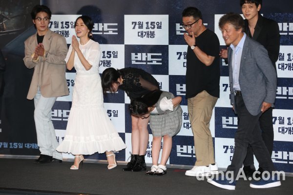 9일 오후 서울 용산구 한 멀티플렉스관에서 열린 영화 \'반도\' 언론배급시사회에서 출연진이 참석해 포즈를 취하고 있다. 동아닷컴 국경원 기자 onecut@donga.com