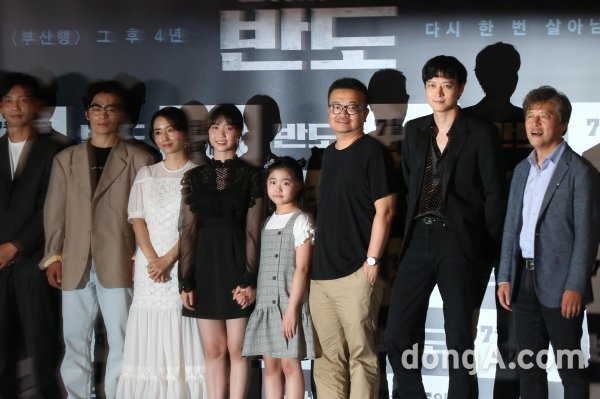9일 오후 서울 용산구 한 멀티플렉스관에서 열린 영화 \'반도\' 언론배급시사회에서 출연진이 참석해 포즈를 취하고 있다. 동아닷컴 국경원 기자 onecut@donga.com
