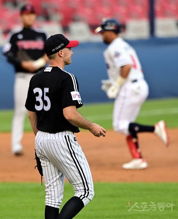 3회말 1사 1루 상황에서 LG 윌슨이 투런포를 허용하고 있다.