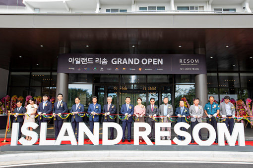 충남 태안 아일랜드 리솜(구 리솜오션캐슬)이 10일 그랜드 오픈했다. 이 날 열린 오픈식에는 김상열 호반그룹 회장과, 최승남 부회장 등 호반그룹 관계자와 이우성 충청남도 문화체육부지사, 가세로 태안군수 등이 참석했다.
