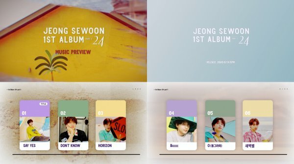 소속사 스타쉽엔터테인먼트는 12일 공식 유튜브와 네이버 V 라이브 채널에 정세운의 첫 번째 정규앨범 ‘24’ PART 1의 전곡 하이라이트 음원이 포함된 앨범 프리뷰 영상을 공개하며 가요 팬들의 눈과 귀를 단숨에 사로잡았다.