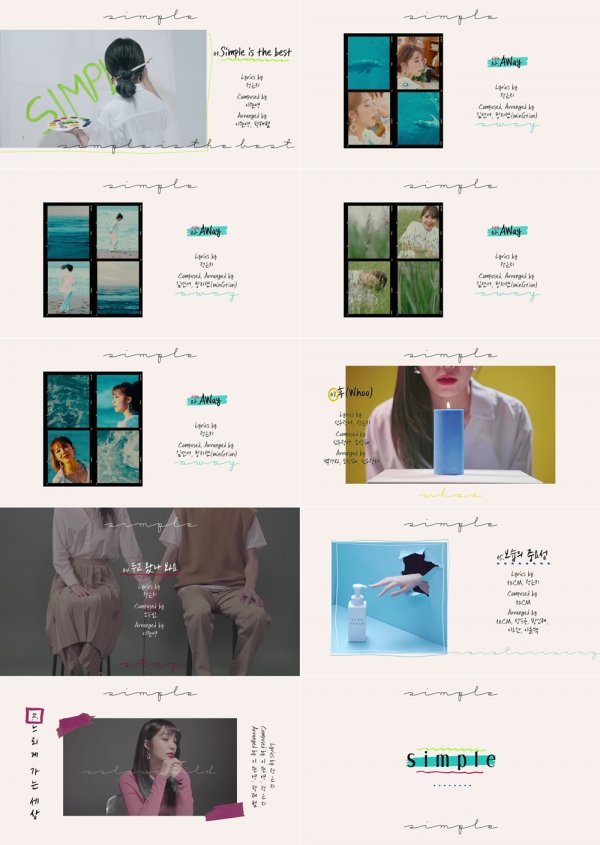 2분 가량의 하이라이트 메들리에는 정은지의 재킷 촬영 현장 등 \'힐링 감성\' 가득한 영상과 함께 타이틀곡 \'AWay\'를 포함해 \'Simple is the Best\', \'후(Whoo)\', \'두고 왔나 봐요\', \'보습의 중요성\', \'느리게 가는 세상\'까지 총 6곡의 신보 미리듣기가 흘러나오며 보고 듣는 재미를 선사했다.