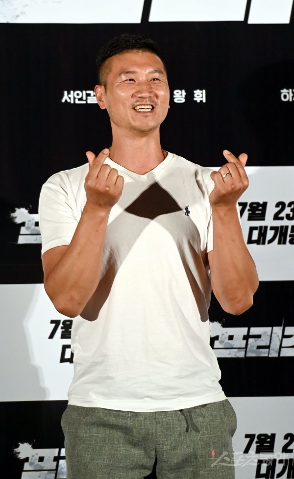배우 장영진이 16일 서울 용산구 CGV 용산아이파크몰에서 열린 영화 ‘프리즈너’ 언론 배급 시사회에 참석해 포토타임을 갖고 있다.
