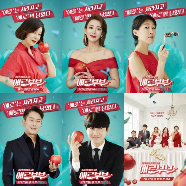 17일 공개된 MC 5인의 개별 포스터는 강렬한 붉은색 의상을 입은 여성 MC 최화정 홍진경 이상아와 검은 슈트 차림의 남성 MC 이용진 양재진의 모습을 담았다. 메인 포스터에서와 마찬가지로 레드vs블랙의 강렬한 대비가 눈에 띄지만, MC들은 온화한 미소와 함께 사과와 쌍안경을 들고는 ‘현실 부부 스토리’를 깊이 있게 바라볼 것을 예고하고 있다.