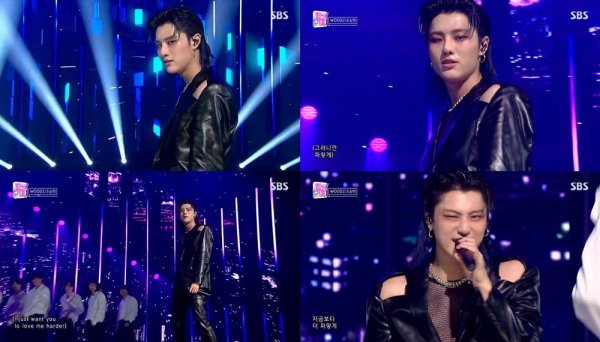 우즈는 19일 오후 방송된 SBS '인기가요'에서 첫 번째 미니앨범 타이틀곡 '파랗게' 무대를 꾸몄다.