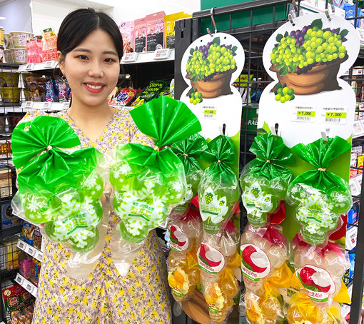 편의점 세븐일레븐이 ‘샤인머스캣 거봉젤리’를 내놓았다. 충북 옥천산 샤인머스캣의 상큼함과 망고의 달달함이 조화롭게 어우러졌다. 포도 알맹이 모양을 형상화한 이색 패키지가 특징이다.