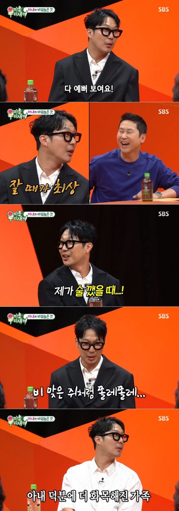 그는 “제일 무서울 때는 술 깼을 때다. 비 맞은 쥐처럼 쫄래쫄래 따라다닌다”고 고백했다. 하하는 아내의 푸는 방법으로 “최대한 불쌍하게 잔다. 세상의 짐을 다 지고 있는 듯 최대한 앓으면서 잔다. ‘으이그’ 하면서도 이내 쓰다듬어 주더라”고 털어놨다.