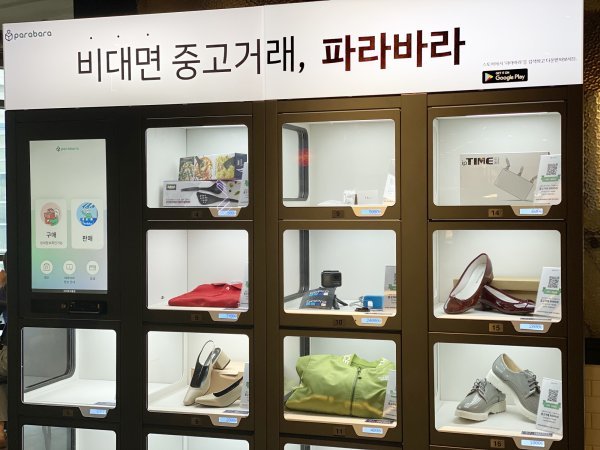 서울 용산 아이파크몰이 D7푸드씨네마에 무인 중고거래 자판기인 ‘파라바라’ 리셀링 박스(사진)를 설치했다.