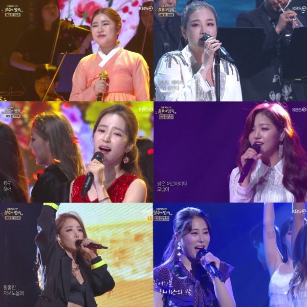 ‘미스트롯’ 송가인과 정미애, 홍자, 정다경, 숙행, 김소유가 KBS 2TV 예능프로그램 ‘불후의 명곡-전설을 노래하다’(이하 ‘불후의 명곡’)에서 화끈한 가창력을 뽐냈다.