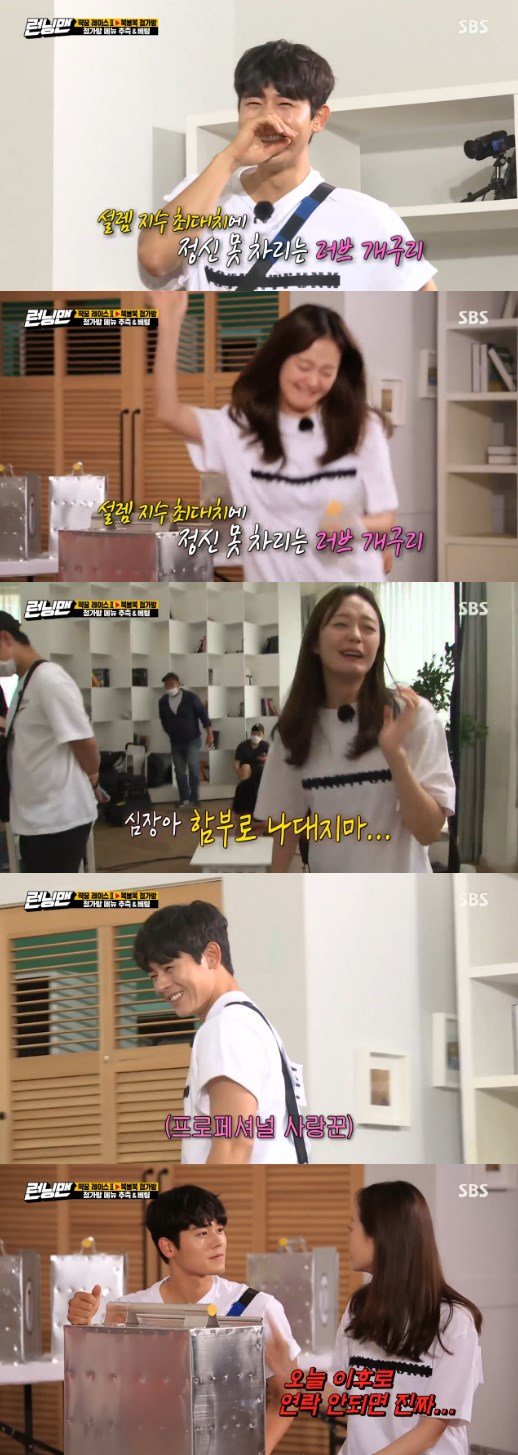 이에 전소민은 깜짝 놀라며 설레어했고 지석진은 “동준아 얘 마음 흔들지마”라고 했고 김종국은 “너 되게 나쁜 애다”라고 말했다. 전소민은 “동준아, 누나 일 좀 하자”라며 “너 오늘 이후로 연락이 안 되면 진짜 혼난다”라고 말했다.