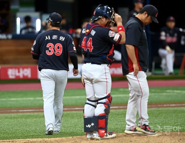4회말 무사 1루에서 롯데 선발 서준원이 교체되고 있다.