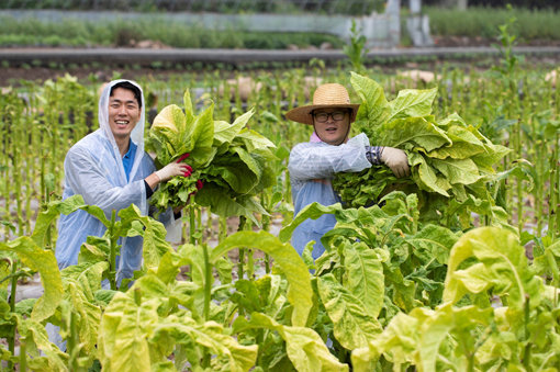 KT&G는 농가들의 고충을 덜어주고자 2007년부터 매년 봉사활동을 실시해 농민들과의 상생을 지속해오고 있다. 올해는 30여 명의 임직원이 문경시 가은읍의 잎담배 농가를 방문해 3000m²의 농지에서 약 4000kg의 잎담배 수확 봉사활동을 펼쳤다.