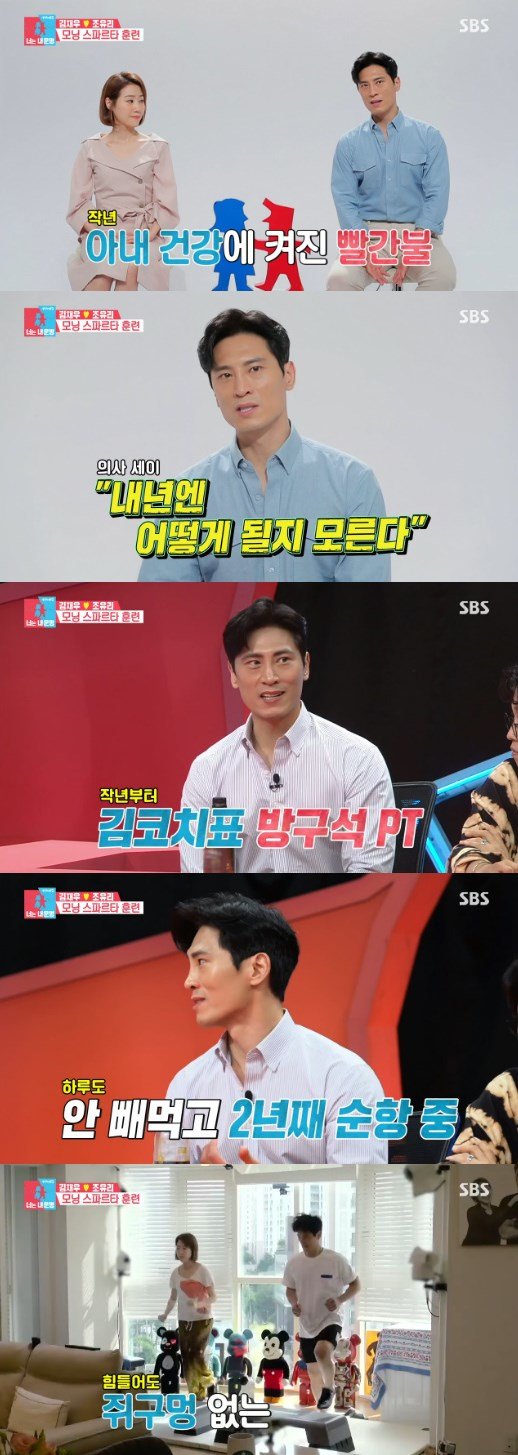 이날 김재우는 “작년에 아내의 건강 신호에 빨간불이 왔다. 내년에 어떤 상황이 올지 모른다고 의사 선생님이 그러더라. 그래서 작년 5월 31일에 아내에게 각서를 받았다. 내가 매일 아내에게 운동을 가르쳤는데 1년이 넘게 하고 있다”라고 말했다.
