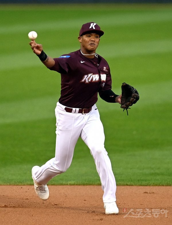 키움 러셀이 1회말 타구를 잡아 1루로 송구하고 있다.
