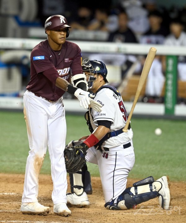7회초 2사 키움 러셀이 사구로 출루하고 있다.