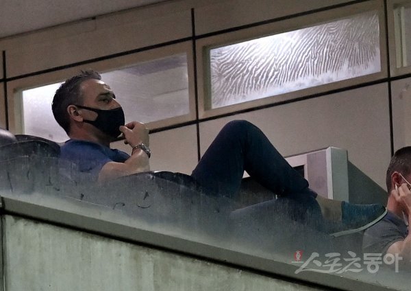 29일 서울 상암 서울월드컵경기장에서 열린 ‘2020 하나은행 FA CUP’ FC 서울과 포항 스틸러스의 8강 경기에서 축구대표팀 벤투 감독이 경기를 지켜보고 있다. 상암 | 김민성 기자 marineboy@donga.com