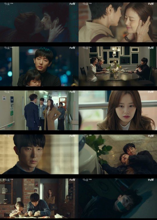 이날 방송에서는 ‘악의 꽃’이 피어나는 감각적인 타이틀 시퀀스에 이어 물속에 묶여 발버둥치는 백희성(이준기 분)과 그런 그를 구하려는 간절한 차지원(문채원 분)의 애절한 수중 키스로 문을 열었다. 과연 두 사람의 앞날에 무슨 일이 생기는 것인지 강렬한 한 방을 날리고 시작한 전무후무한 오프닝이었다.
