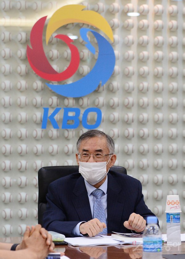 30일 서울 강남구 도곡동 야구회관에서 롯데 자이언츠 지성준과 SK 와이번스 퓨처스팀 관련 KBO 상벌위원회가 열렸다. 최원현 상벌위원장이 위원들과 이야기를 나누고 있다.