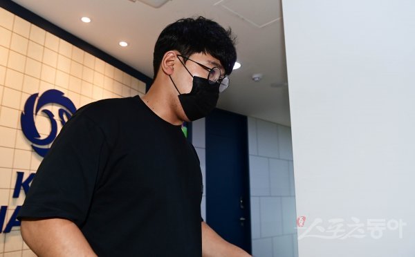 30일 서울 강남구 도곡동 야구회관에서 롯데 자이언츠 지성준과 SK 와이번스 퓨처스팀 관련 KBO 상벌위원회가 열렸다. 롯데 지성준이 상범위원회에 참석하고 있다.