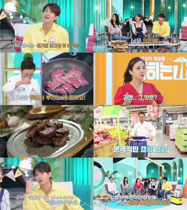 한편, 임성근 셰프는 캠핑요리 레시피 공개에 앞서 맛있는 고기 부위 선정부터 제철 아채, 과일 등을 고르며 마트 장보는 팁을 알려줬다. 이어 스튜디오에서 선보인 고기 구이, 고기 주물럭, 찹 스테이크 요리는 같은 갈비살 부위를 활용했지만 약간의 소스 변화로 완전히 다른 맛을 내 MC들과 제작진이 깜짝 놀랐다.