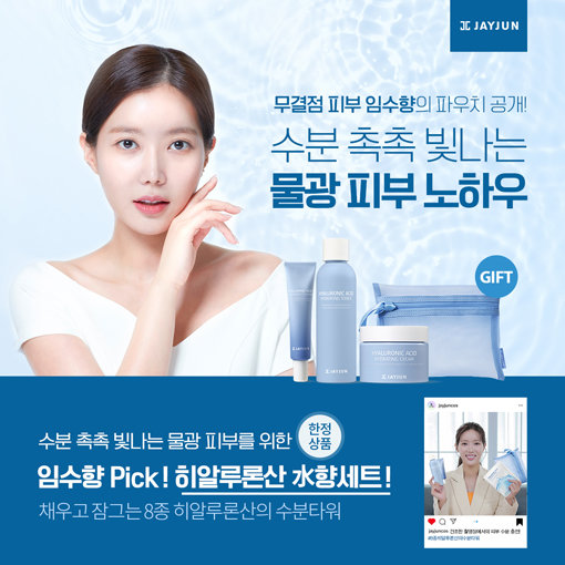 제이준코스메틱이 공식 온라인몰에서 ‘히알루론산 水향 기획세트’를 특별가에 한정 판매하는 프로모션(사진)을 진행한다.