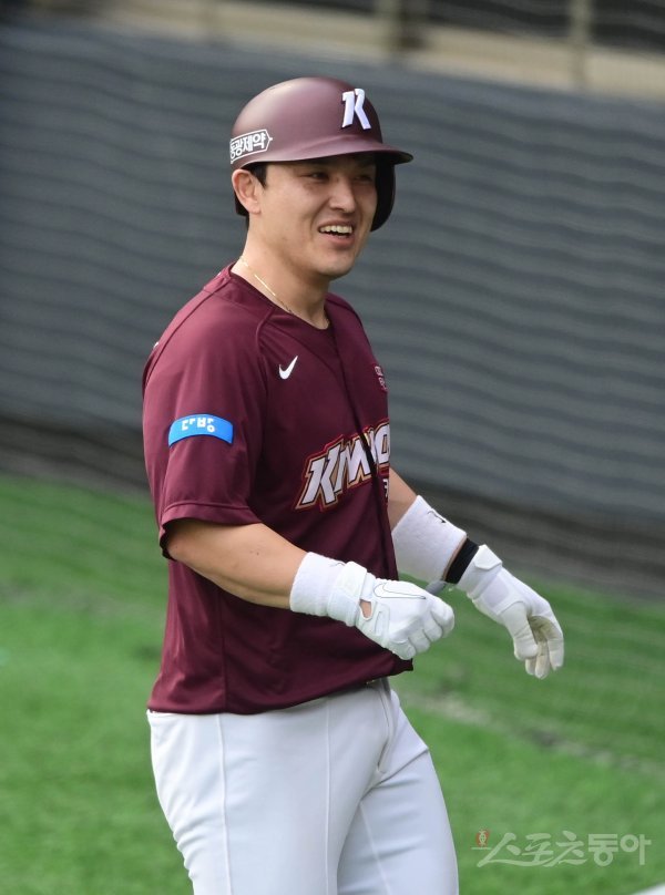 30일 서울 잠실야구장에서 ‘2020 신한은행 SOL KBO리그’ 두산 베어스와 키움 히어로즈의 경기가 열렸다. 1회초 2사 1루 키움 박동원이 좌월 2점 홈런을 날린 뒤 웃고 있다. 잠실 | 주현희 기자 teth1147@donga.com