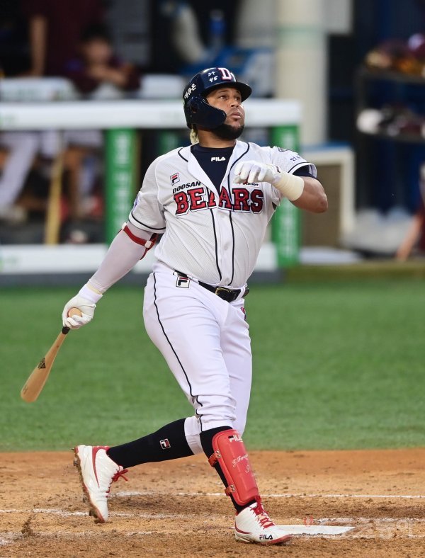 30일 서울 잠실야구장에서 ‘2020 신한은행 SOL KBO리그’ 두산 베어스와 키움 히어로즈의 경기가 열렸다. 3회말 2사 1루 두산 페르난데스가 우월 2점 홈런을 날리고 있다. 잠실 | 주현희 기자 teth1147@donga.com