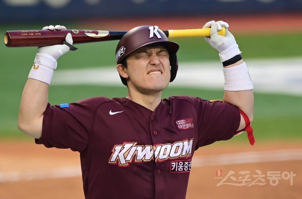 30일 서울 잠실야구장에서 ‘2020 신한은행 SOL KBO리그’ 두산 베어스와 키움 히어로즈의 경기가 열렸다. 3회초 1사 1, 2루 키움 박동원이 뜬공으로 아웃되며 아쉬워하고 있다. 잠실 | 주현희 기자 teth1147@donga.com