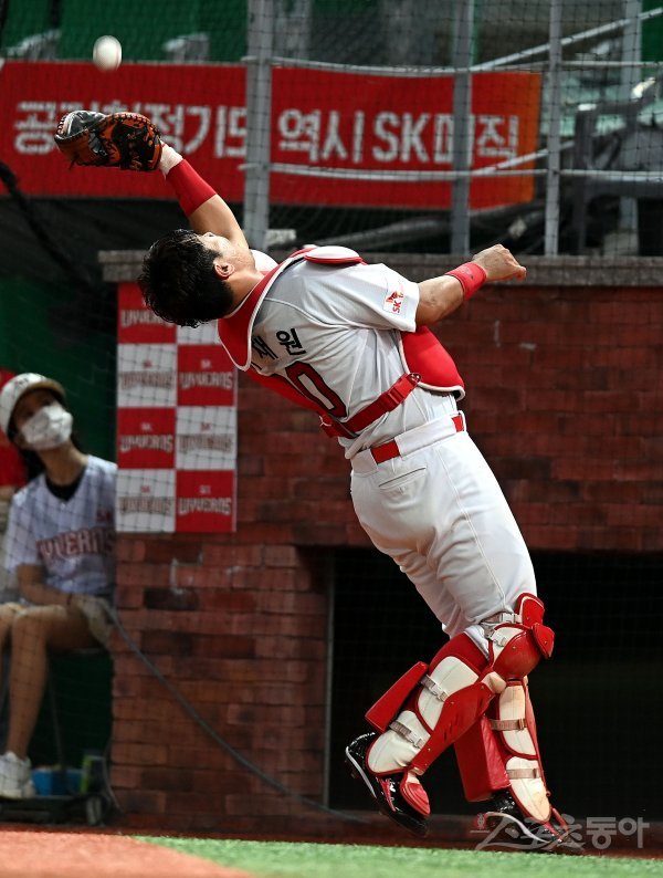 30일 인천 SK행복드림구장에서 ‘2020 신한은행 SOL KBO리그’ SK 와이번스와 LG 트윈스의 경기가 열렸다. 5회초 2사 2, 3루에서 LG 채은성의 파울 타구를 SK 이재원이 잡아내고 있다. 인천 | 김민성 기자 marineboy@donga.com