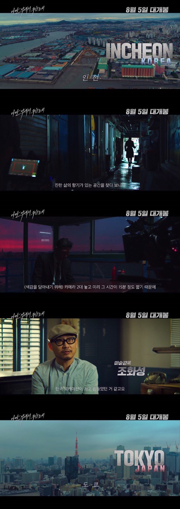 두 번째로 일본은 압도적 오프닝과 함께 무자비한 추격자 ‘레이’가 등장하는 주 무대다. 홍경표 촬영감독은 “구름이 많이 낀 하늘과, 차분한 톤, 정적인 카메라 무브먼트를 통해 피폐해져 있는 킬러”들의 모습을 담았다고 밝혔다. 일본 로케이션의 방점은 무엇보다 낯선 일본 도심에 있는 인남과 무자비한 레이의 대비적인 면모를 극대화해 보여주고 있다.