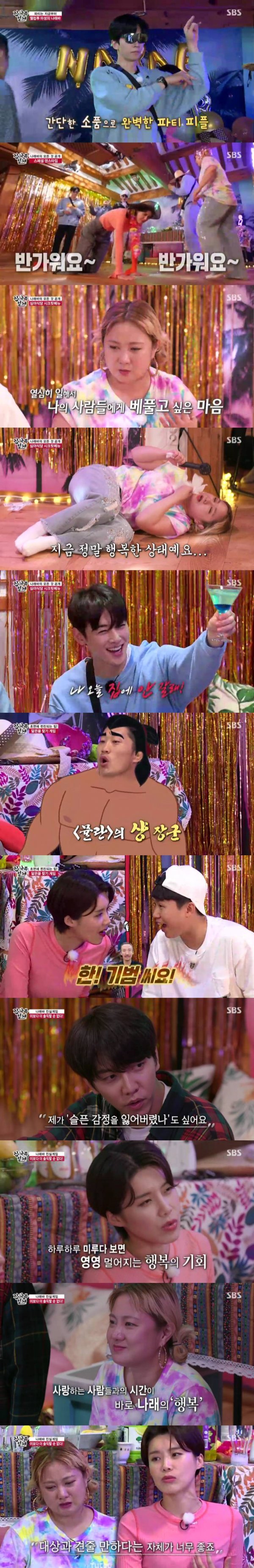 이후 파티의 메인 이벤트인 진실 게임이 시작됐다. 이승기는 ‘최근에 속상해서 눈물 흘린 적이 있냐’라는 질문에 “최근 4년은 없다”라고 답했다. 이어 그는 “내가 ‘슬픈 감정을 잃어버렸나’도 싶다. 슬픈 감정이 올라오려고 하면 내가 커트를 해버리는 것 같다”라며 힘들다는 감정을 억누르며 자신을 채찍질해오고 있음을 밝혀 안타까움을 자아냈다.