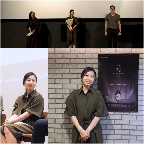 이를 증명하듯 ‘루비’ 청춘 공감 라이브러리톡은 영화에 대한 높은 관심과 함께 전석 매진을 기록하며 열띤 분위기 속에서 진행됐다. 무대인사와 라이브러리톡으로 관객과 만난 박지연은 우아한 카키색 의상을 입은 채 온화한 미소로 시종일관 웃음을 잃지 않아 분위기를 밝게 했다.
