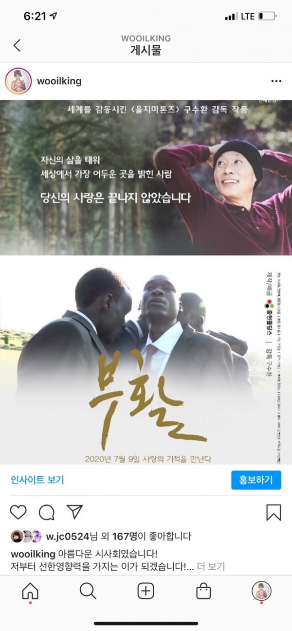 영화 \'부활\' 태그 릴레이는 영화를 본 후 SNS에 #선한영향력, #부활, #이태석신부, #울지마톤즈를 태그해 각자의 뜻을 전하면 된다. 코로나 이슈로 우울함이 더해져 있는 사람들의 일상에 따스함을 전하며 계속 될 것으로 보인다.