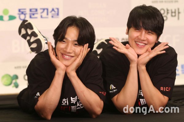 개그맨 김기리(왼쪽)와 류근지가 3일 오전 서울 마포구 상암스탠포드호텔에서 열린 제8회 부산국제코미디페스티벌(이하 부코페) 기자회견에 참석해 포즈를 취하고 있다.