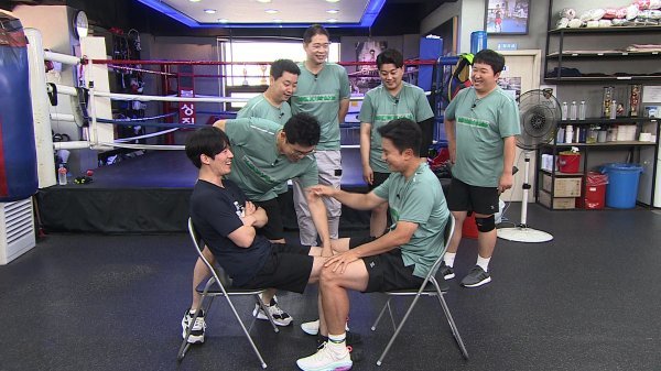 이어 장혁의 1:6 도장깨기 허벅지 씨름이 진행됐다. 초반에는 가뿐하게 배태랑들을 이기던 장혁은 후반부로 갈수록 힘에 부치는지 이를 악물었다. 이윽고 허벅지 끝판왕 안정환이 등장하자 "이건 못 이긴다"라며 고개를 저었다. 과연 축구로 단련된 안정환과 절권도와 복싱으로 꾸준히 운동을 했던 장혁, 허벅지 씨름 승자는 누가 될 것인가.