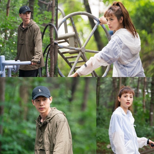 사진 속 구세라는 약수터에 있는 기구를 이용해 운동하고 있다. 그러나 신경은 다른 쪽에 쏠려 있는 듯 하다. 의지로 활활 불타는 구세라의 눈빛이 운동 기구가 아닌, 특정한 곳을 집중해서 의지하고 있는 것. 구세라의 불나방 모드가 제대로 발동한 모습이다. 반면 서공명은 모자를 푹 눌러쓴 채 사람들의 눈치를 살피는 것처럼 보인다. 동시에 이를 능청스럽게 표현하는 나나, 박성훈 두 배우의 모습이 웃음을 자아낸다.