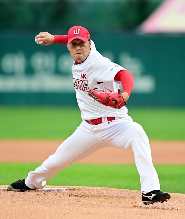 1회초 SK 김주한이 마운드에 올라 역투하고 있다.