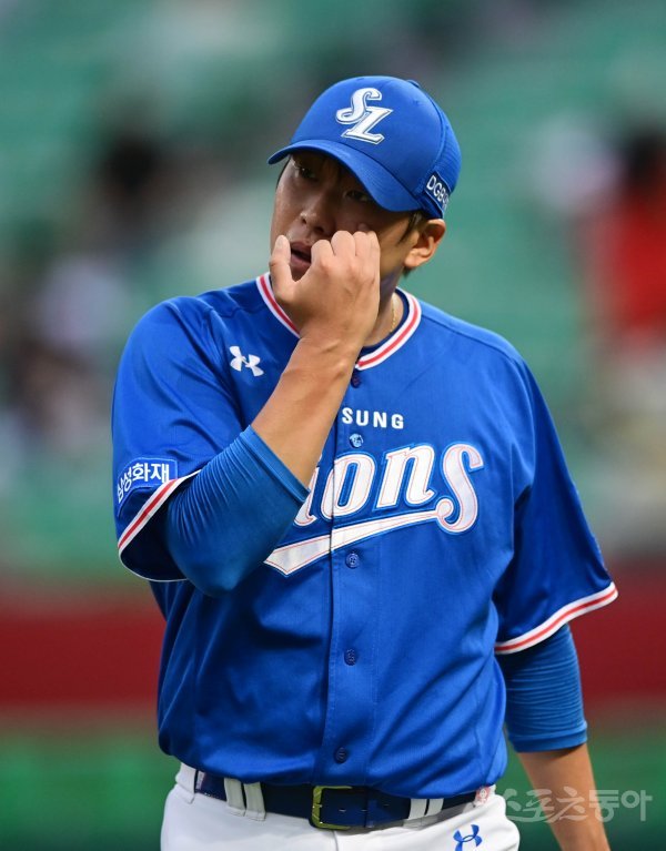 8일 인천 SK행복드림구장에서 ‘2020 신한은행 SOL KBO리그’ SK 와이번스와 삼성 라이온즈의 경기가 열렸다. 삼성 윤성환이 1회말 수비를 마친 뒤 2실점을 아쉬워하고 있다. 인천 | 주현희 기자 teth1147@donga.com